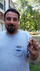 He said they were lost about a week ago during an argument and were thrown there. Well there ya go you know what happens when you assume. They spent a couple of hours looking for them with flashlights. I asked where she was standing when she threw them. He said that he threw them. There ya go another assumption! He showed me the direction. I went back to my truck to get my equipment. I had to fight the sounds from the sprinkler system in the ground. After about 20 minutes I got a good repeatable signal. Looked through the flowers and found the wedding band. Rob was amazed. We were now looking for the engagement ring. I continued with my machine and Rob then jumped into the flower bed and started hand searching the bushes. He said that he thought one went farther then the other and that one made it to the bushes. After about 10 more minutes I hear Rob Shout, “I got it!!” And there it was. A few high fives were thrown. He stated you saved my life! I took a few pictures and gave him my business card just in-case there was a need in the future. He was a happy man… My wife said after I got home was “I knew it! I knew they were thrown!” I have responded to so many lost rings because they were thrown in the heat of the moment. Call me 1st, I’ll take the ring off of your hands and save the time for a search later…