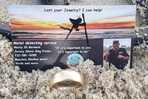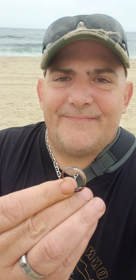 Earlier I was contacted by Kathy on behalf of her husband Joe. When Joe went to go for a swim he gave his wedding ring to Kathy to hold onto. She put it on her finger but then a lantern fly landed on her and when she went to swat it away Joe's ring flew off and sank into the sand. They tried to find it without luck. I went out there asap and within minutes of them showing me where, I had Joe's ring in my scoop! They were so happy! I love what I do!